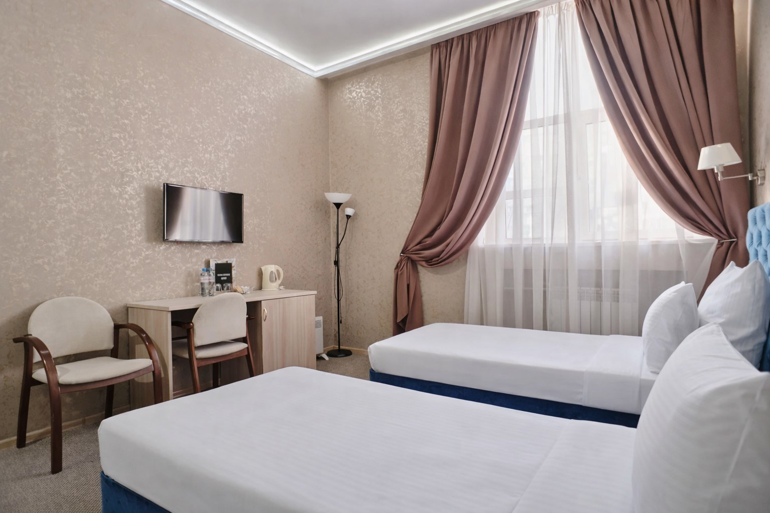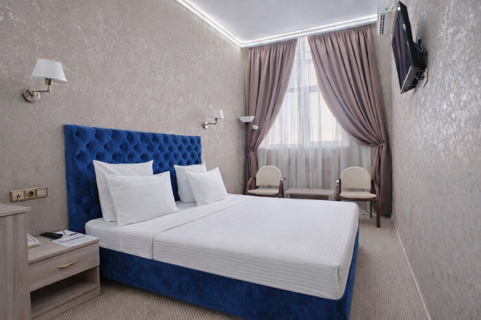 В номерах категории Стандарт–одна двуспальная кровать или две односпальные кровати, чайный набор, бесплатный доступ в интернет, телевизор с плоским экраном и спутниковым телевидением, фен, кондиционер, холодильник, косметические принадлежности, тапочки