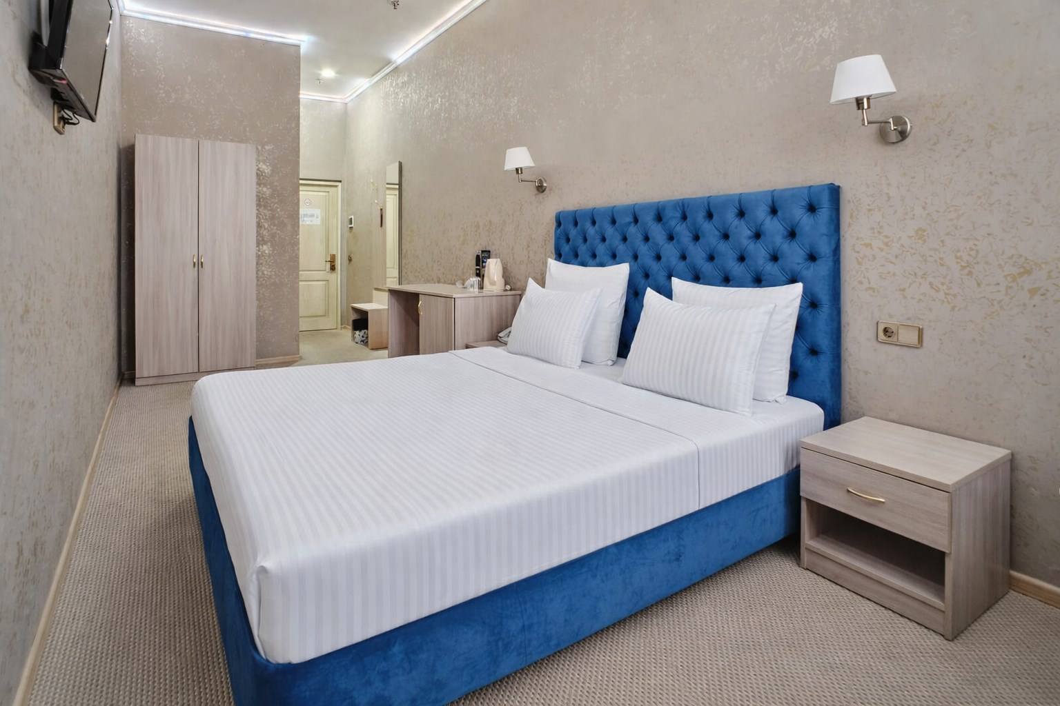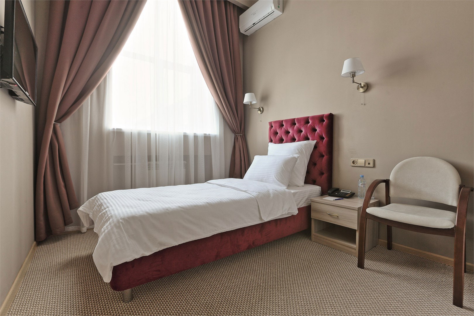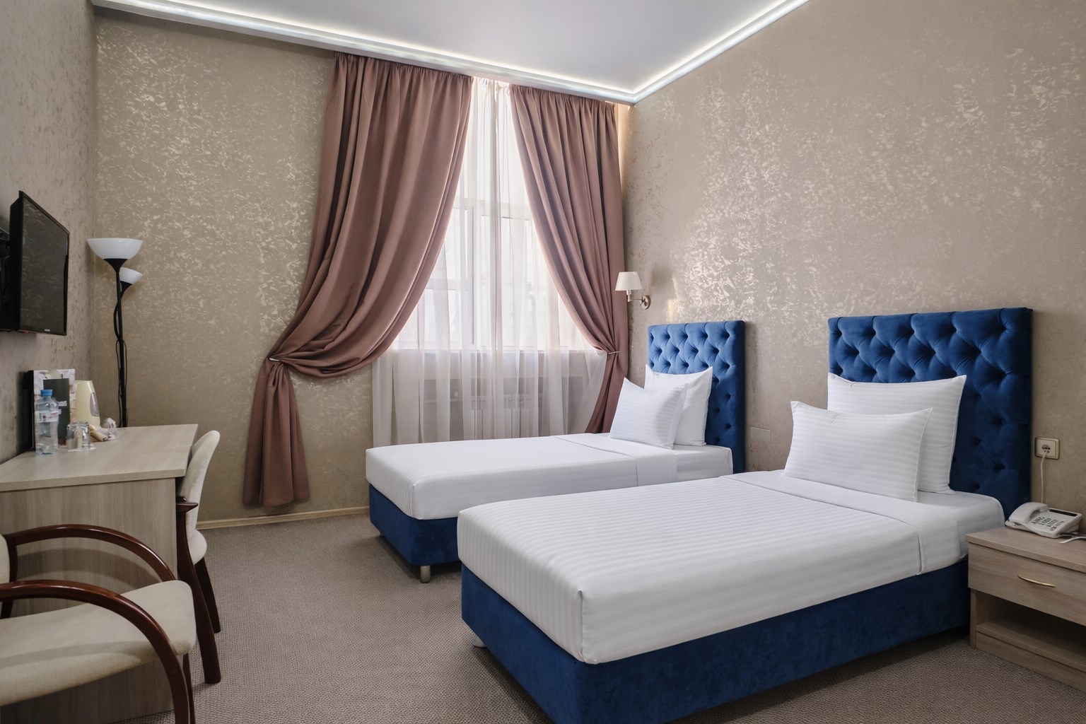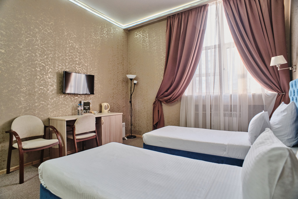 В номерах категории Стандарт–одна двуспальная кровать или две односпальные кровати, чайный набор, бесплатный доступ в интернет, телевизор с плоским экраном и спутниковым телевидением, фен, кондиционер, холодильник, косметические принадлежности, тапочки